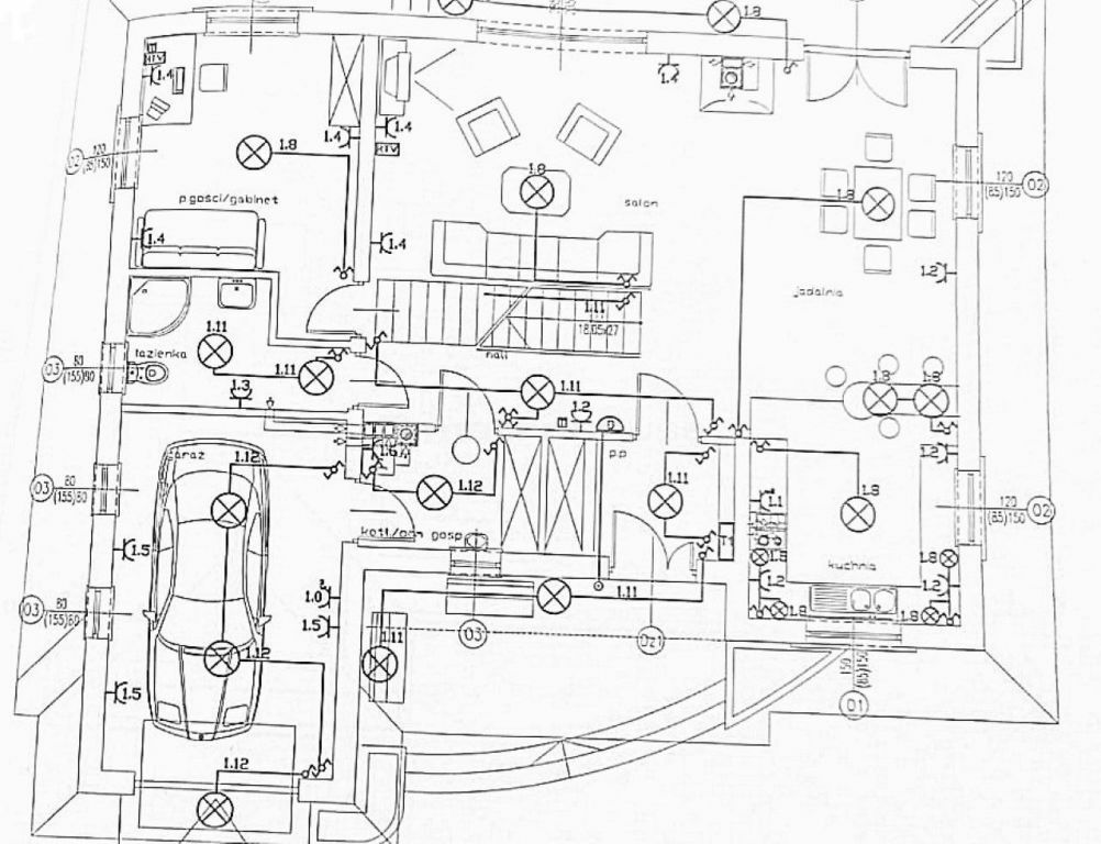 Parter: przestronny salon z jadalnią o powierzchni ok. 50 m², otwarta kuchnia, pokój, łazienka oraz kotłownia.